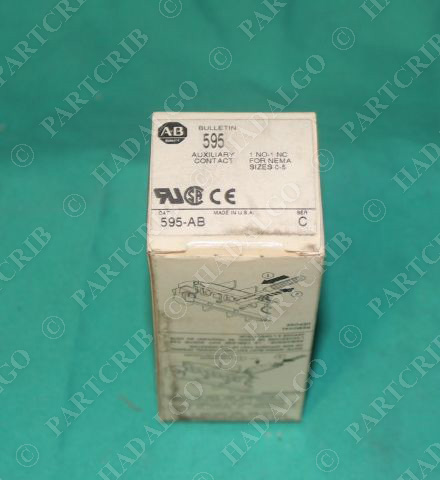 New Allen Bradley, 595-AB, Auxiliary Contact 1NO 1NC Size 0-5 as shown in the pictures. We can ship next day, please call for more information. Please be sure to check our store for more Surplus items.