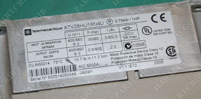 New Telemecanique ATV28HU18N4U AC Speed drive 0.75kW 1HP as shown in the pictures. We can ship next day, please call for more information. Please be sure to check our store for more Surplus items.