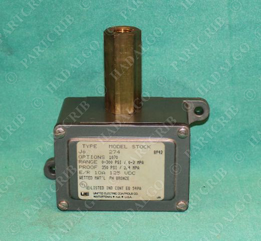 New United Electric J6 274 Pressure Switch 0-300psi 10A 125VDC as shown in the pictures. We can ship next day, please call for more information. Please be sure to check our store for more Surplus items.